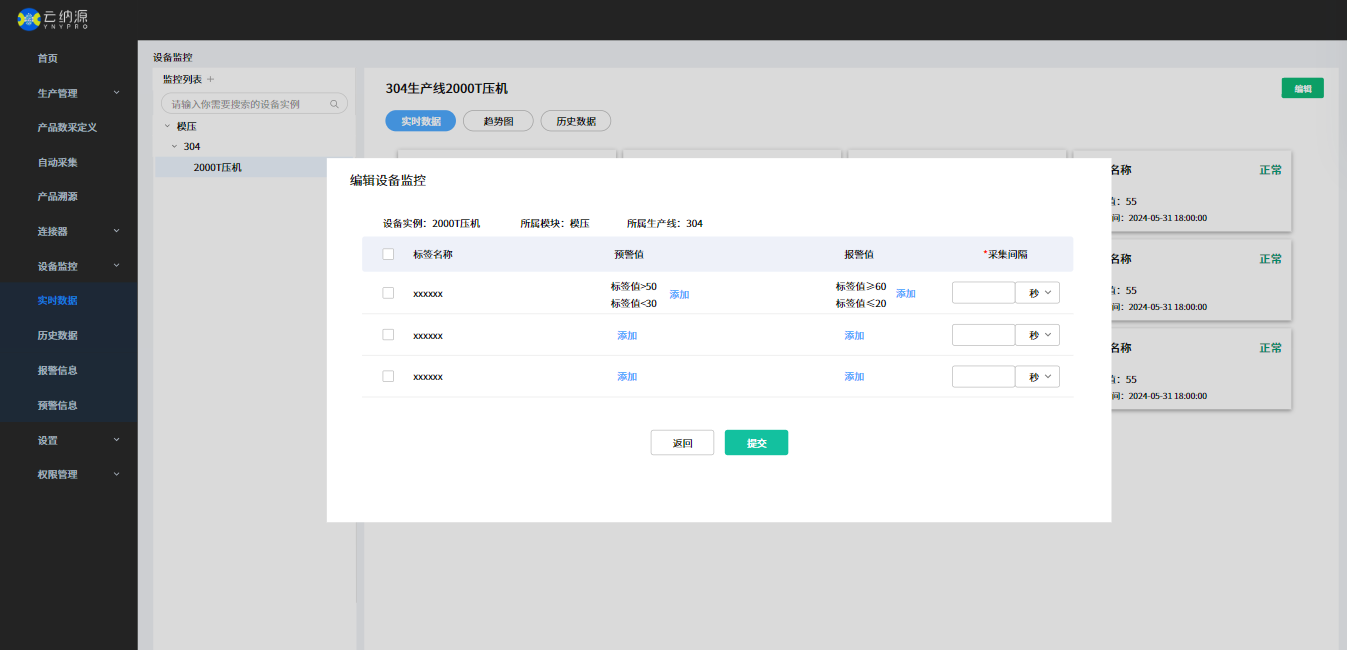 支持厂家根据自身不同产线,工艺,产品型号以及不同甲方客户的需求,配置不同的数采项